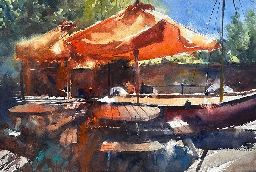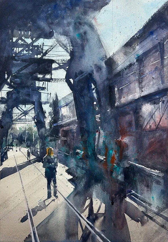 As for my paintings I work in watercolours and have developed a strong recognisable style with the main focus of my work being urban and rural landscapes from the Bristol area with a few from travels over the years thrown in.