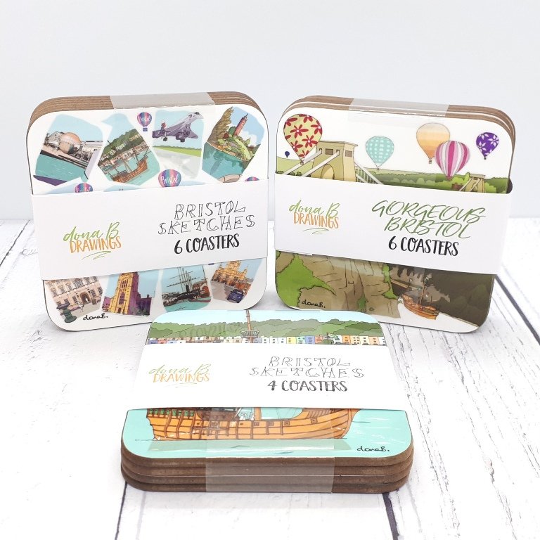 Starting with hand-drawn illustrations Dona combines these with her digital colour skills to create warm and vibrant images of your favourite Bristol landmarks. She has developed a range of gifts and homewares using these images so you can take home a useful and beautiful bit of dona B Bristol illustration - and they make great gifts too.