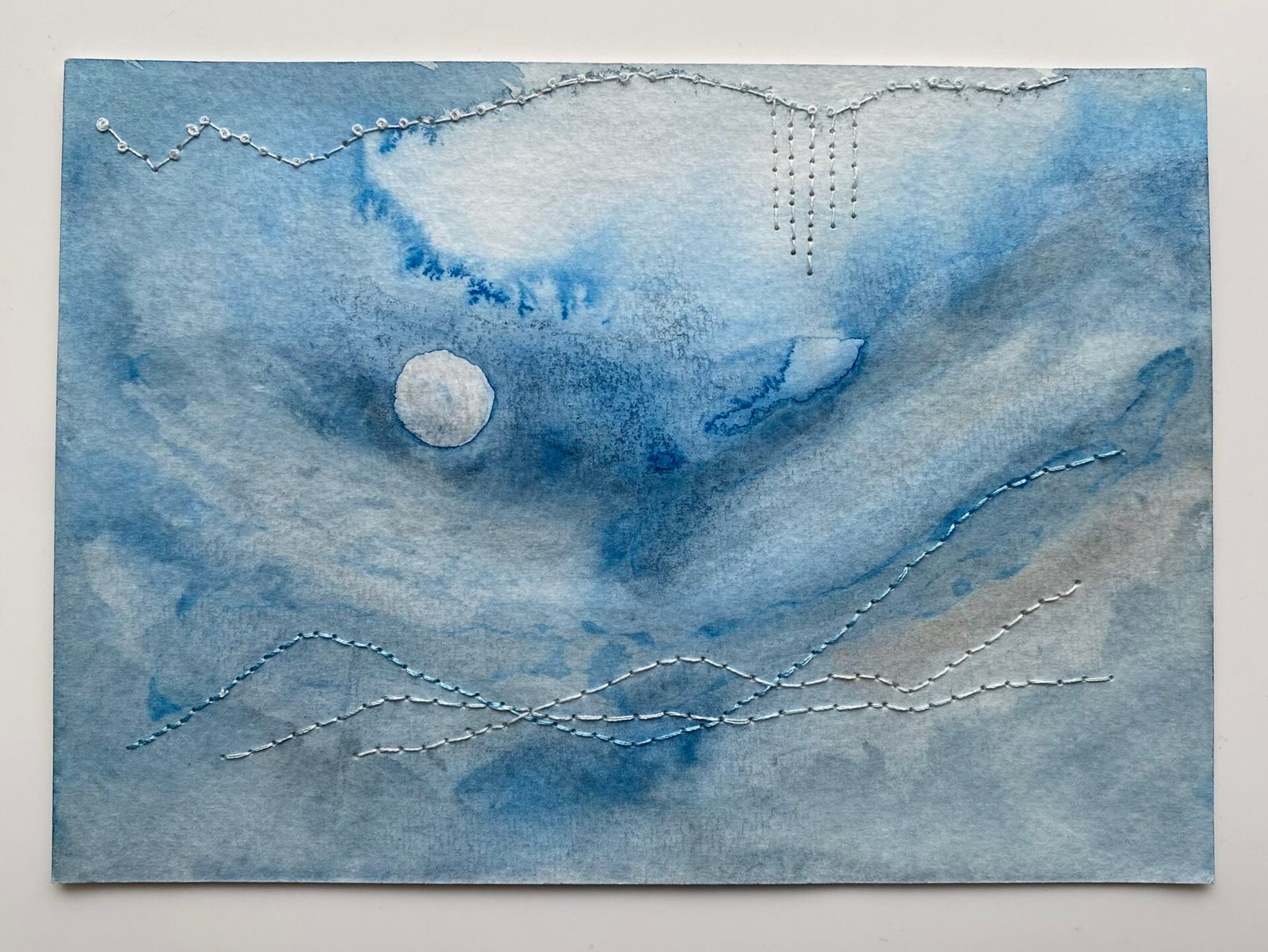 Over the past year I have expanded my practice to include embroidery on watercolour paintings, bringing together textile techniques and painting. These mixed-media pieces combine delicate stitching with colour and illustration, adding a new dimension to my textile collection.