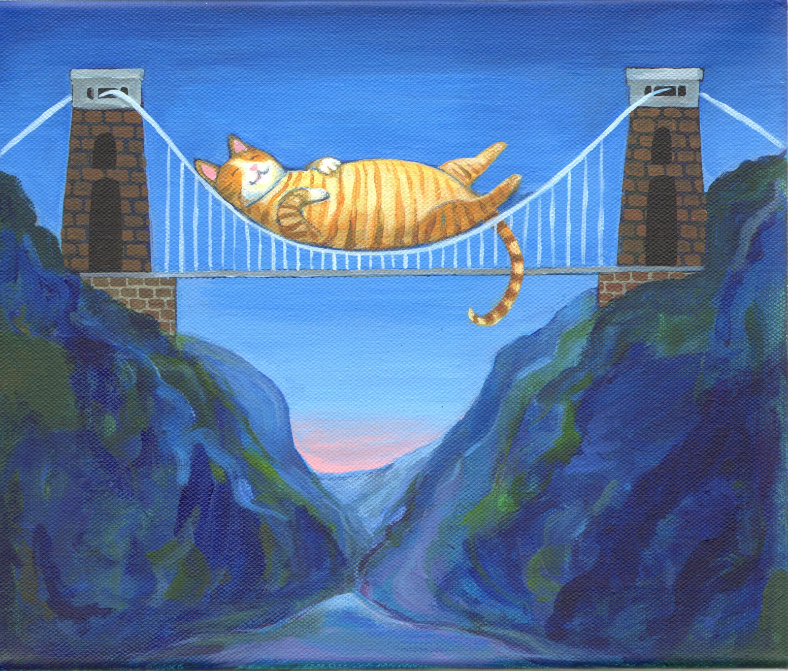 Taking inspiration from the iconic Clifton Suspension Bridge, she has produced a plethora of illustrations and prints of animals sleeping on the bridge, such as the "Sleepy Cat", which has proven the most popular over the years.
