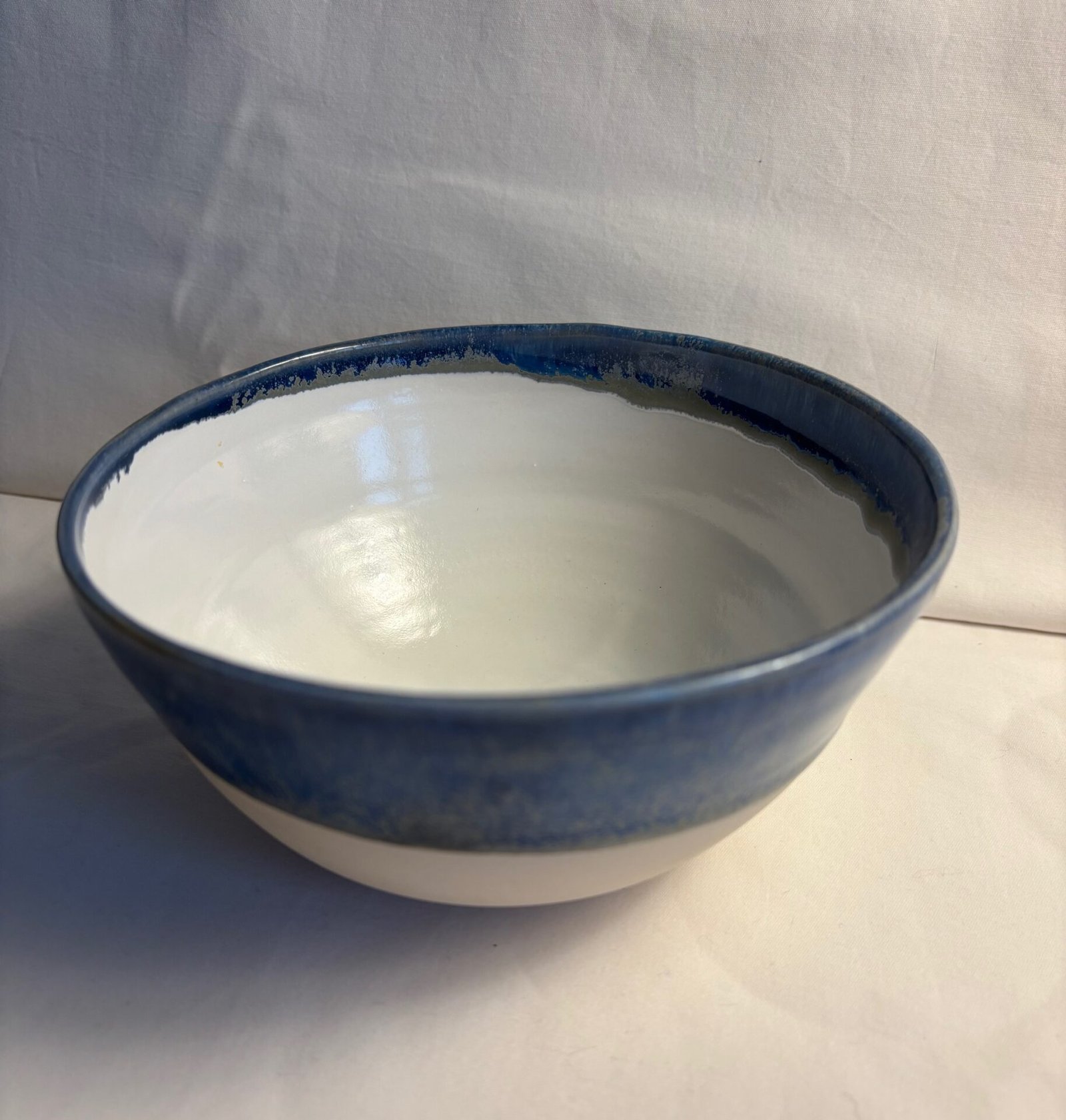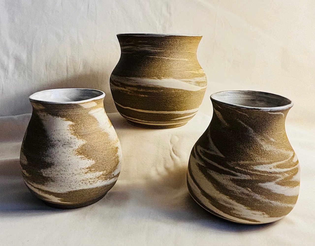 I have been fascinated by ceramics and specifically the pottery wheel most of my life. After a career as a theatre producer, I am now delighted that I get to work with clay every day. There is always something new to learn about this ancient craft. While technology has made some aspects less tricky, the basic principles are the same as they were a thousand years ago. A thumb print on an ancient piece of pottery connects us across time and cultures. In my work I like to show a little of the process in the finished piece: the swirl of clay as I create a pot on the wheel or a thumb mark that shows how I have glazed a mug or bowl: a little trace of the human in the clay.
