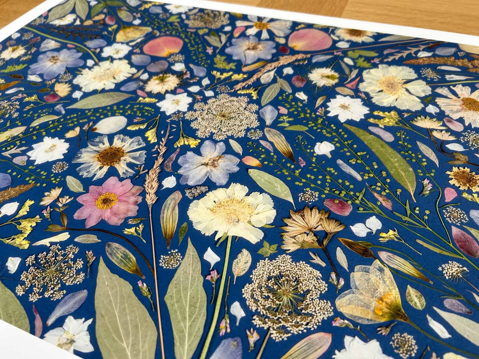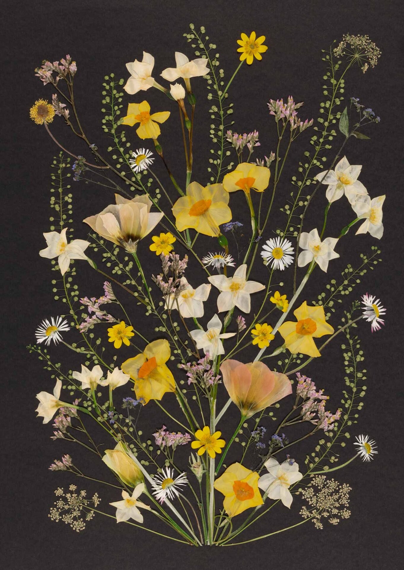 Tanya uses pressed flowers and foliage to create original artworks and fine art Giclée prints. Whenever possible she sources sustainably grown flowers and foliage from her own cut flower beds or local flower farms. These are then traditionally pressed by hand using Tanya’s homemade presses. Every design is unique in its composition, placement and colour and is meticulously handcrafted to show off the intricate and vivid details of the flowers and their structure.